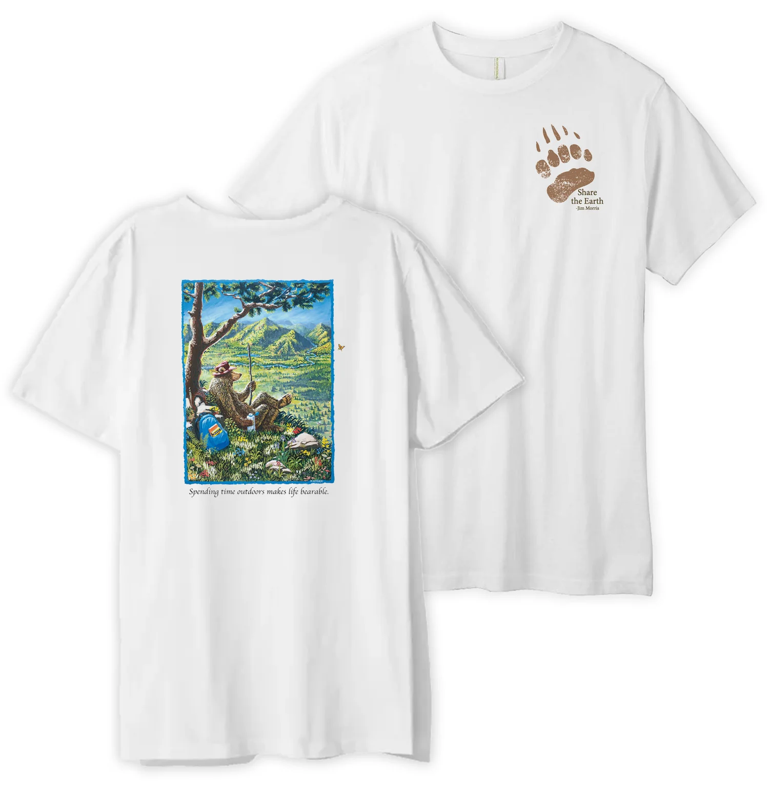 "There’s a sense of wonder and curiosity that awakens when we encounter a wild animal—a bear, deer, elk, moose, wolf, whale, dolphin, shark, turtle, or fish. It reminds us to pause and be present. Like this bear, sitting quietly with a walking stick and backpack, taking in the view. Resting under a tree, watching the river curve through the valley, counting the layers of mountains as they fade into the distance. It’s a moment away from distractions—feeling the texture of the tree bark, the warmth of the sun, the colors of wildflowers, and the quiet life of the forest. Looking up through the branches, watching clouds drift by, leaves twist in the breeze, and birds and creatures move above. It’s about finding stillness, noticing the small details, and feeling connected to the world around you." -Jim