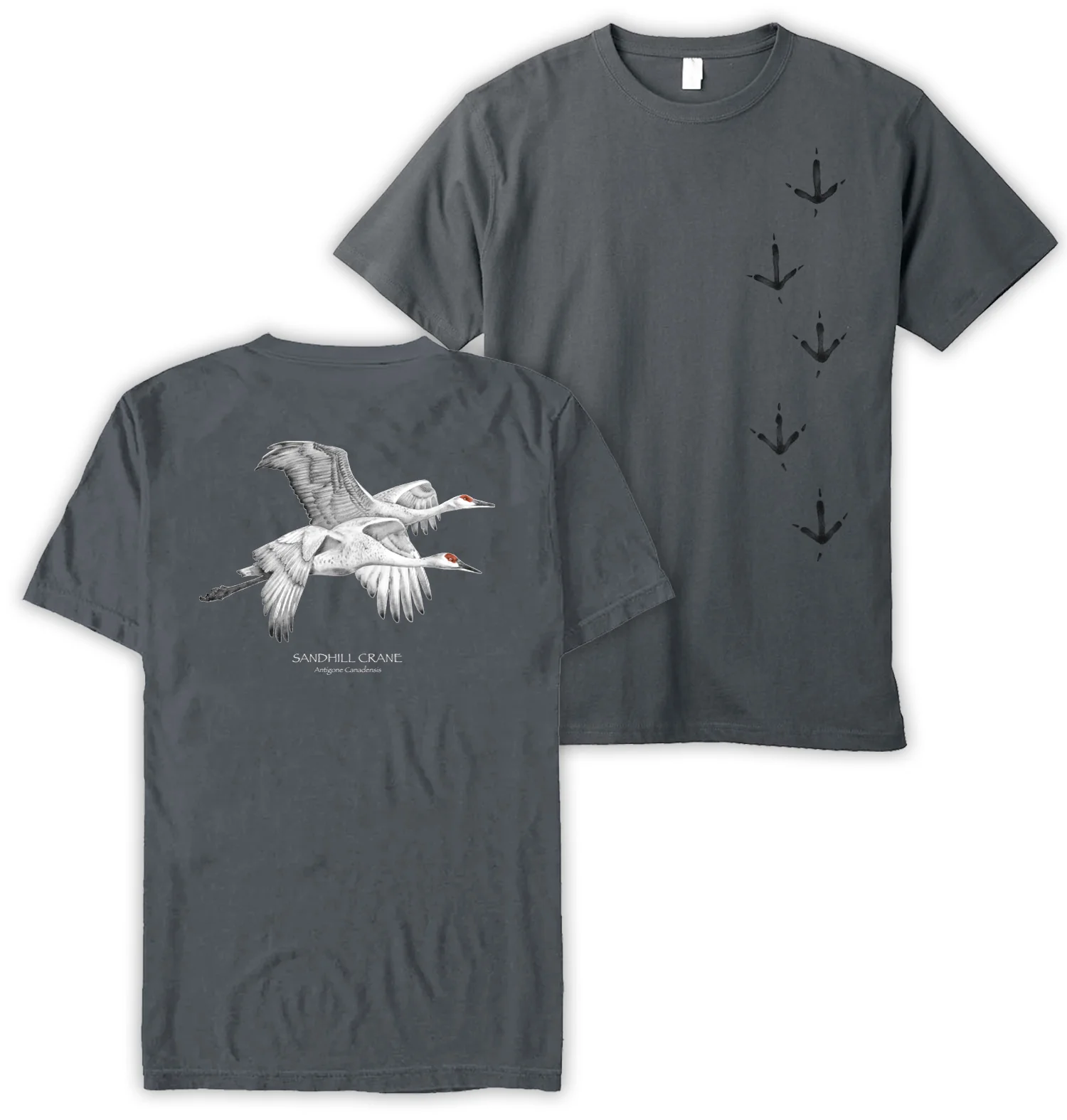 Sandhill Cranes with the scientific name "Antigone Canadensis". Tracks printed on the front